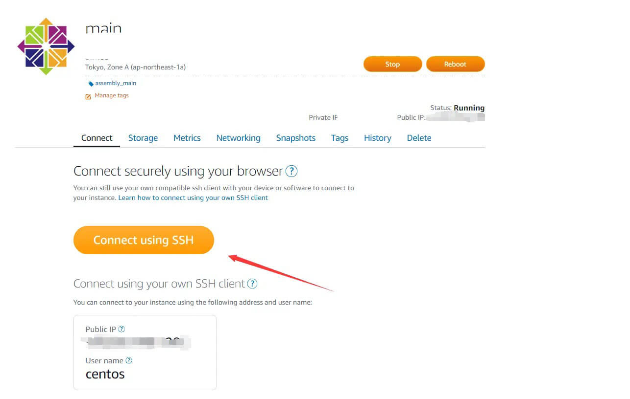 1:使用网页控制台上的 "Connect using SSH"连接服务器,如图