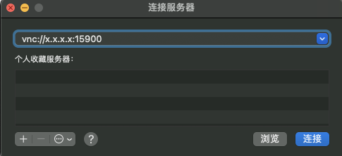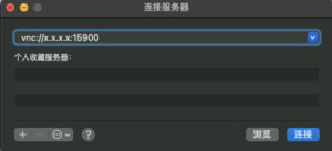 以上为需要被远程桌面的电脑(mac)。通过远程桌面工具(VNC)连接地址为服务器地址,端口号为15900即可实现远程接入。